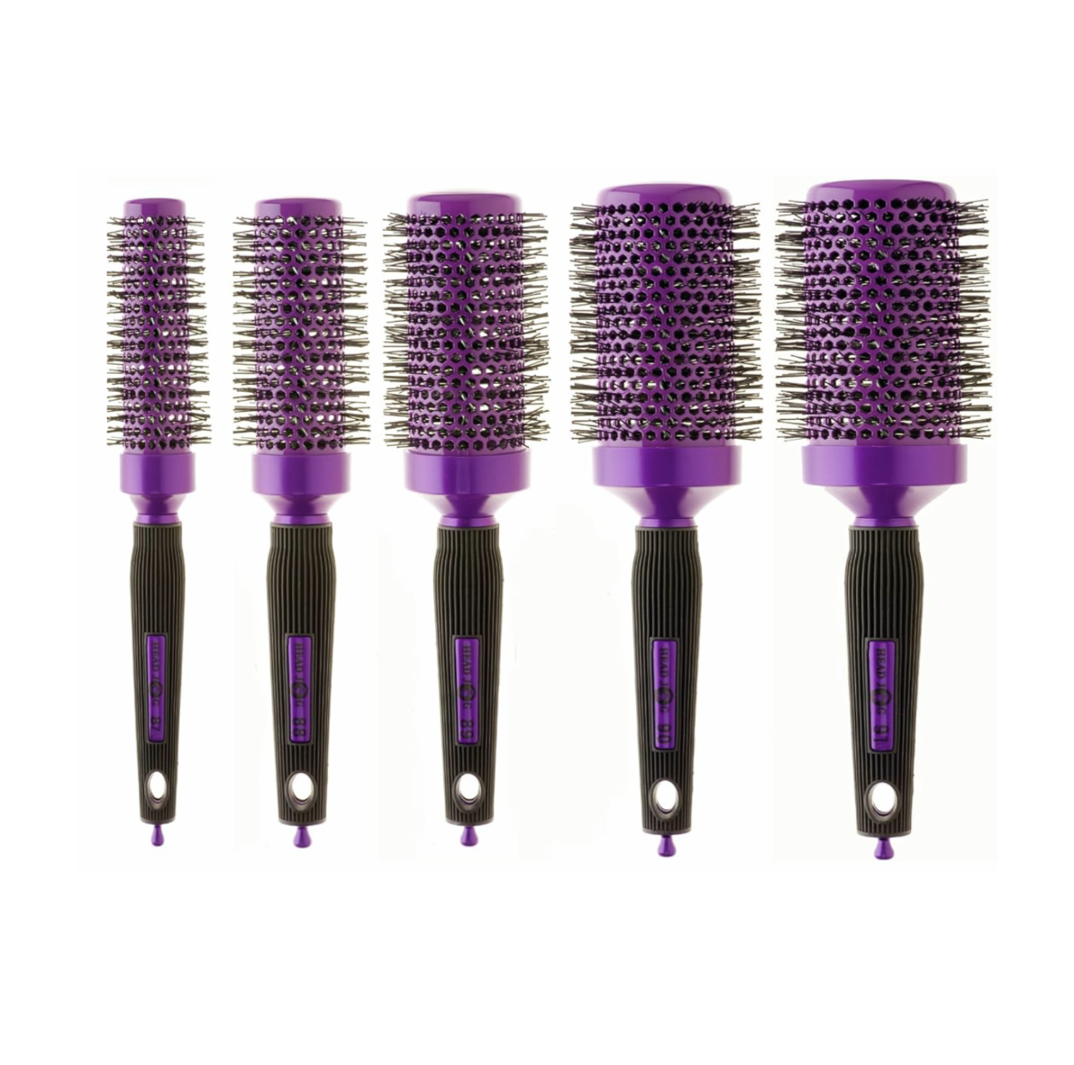 Ceramic and ionic technology combine in these ionic bristle radial brushes featuring a ceramic-coated barrel. Ventilation holes promote warm air circulation at the hair roots, ensuring quick and efficient blow-drying and styling.